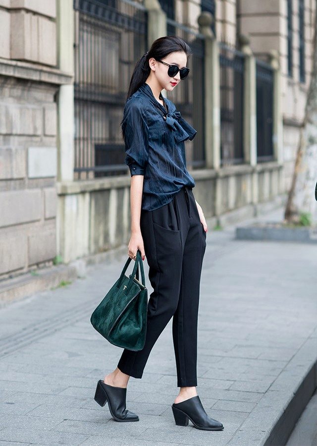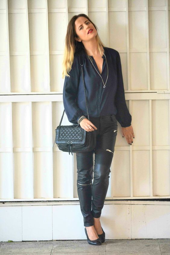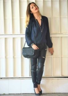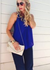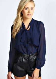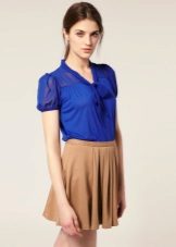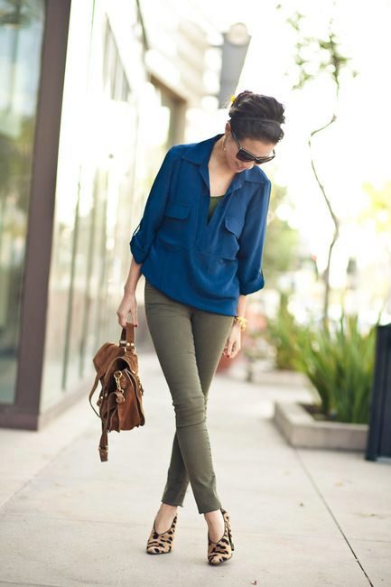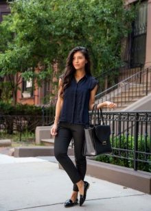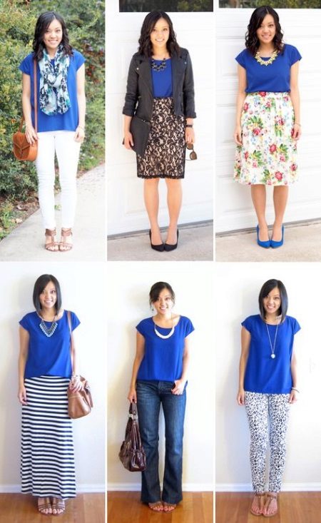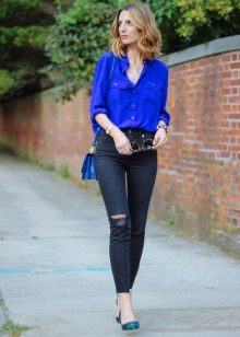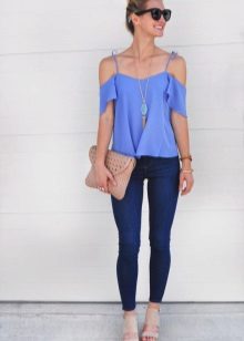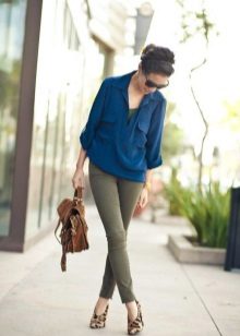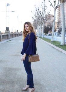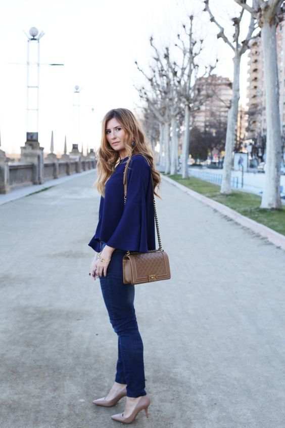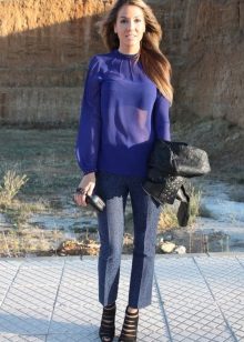 Wear a blue blouse in casual style for a casual look. With that, with one basic model, you can make up a lot of interesting bows.