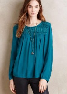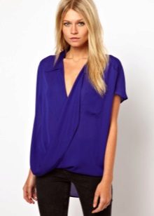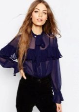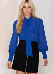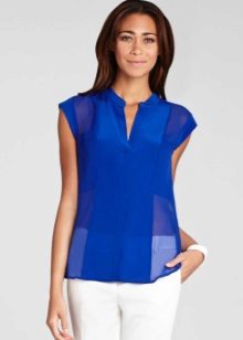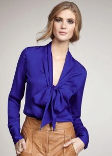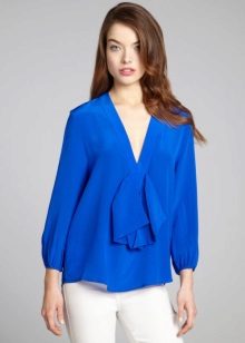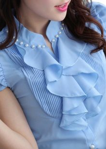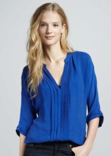 If you have a dress code at work, a blue blouse will fit perfectly into his frame. Prefer a concise model without a large neckline and a variety of draperies.
