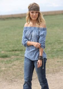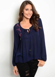 Such blouses are sewn from light fabrics, they can be even or reassembled from the bottom. Often they are decorated with various embroidery, so they are sometimes called ethno-style blouses. They are perfect for a casual style and blend perfectly with jeans and other denim clothing.