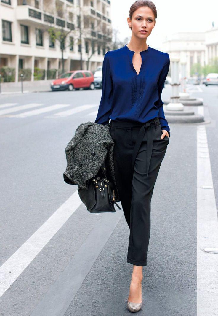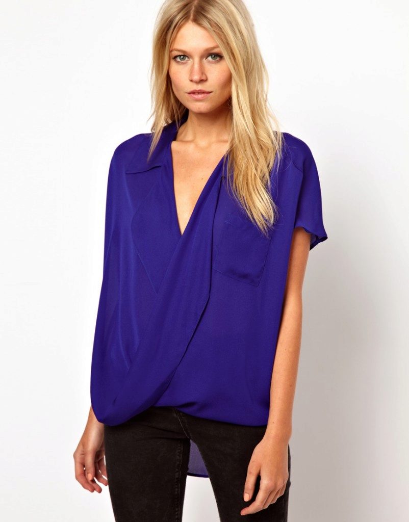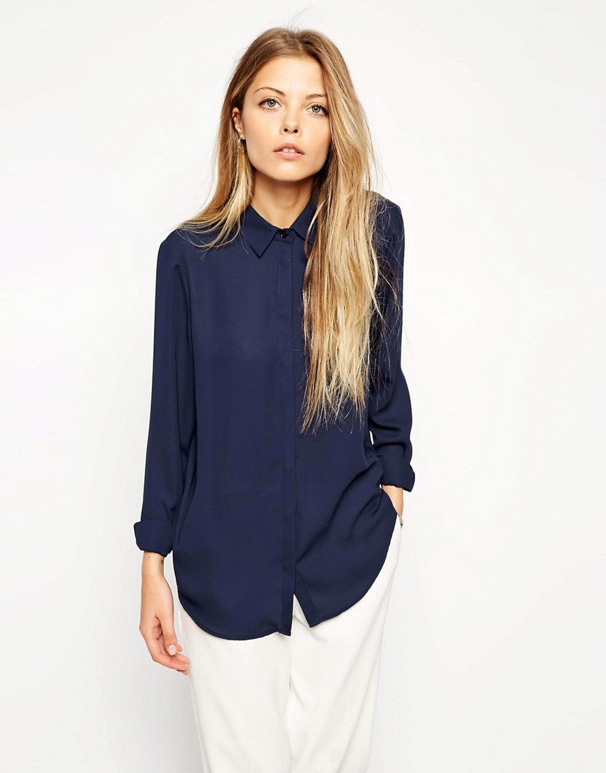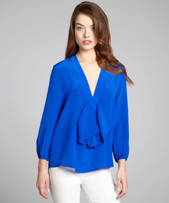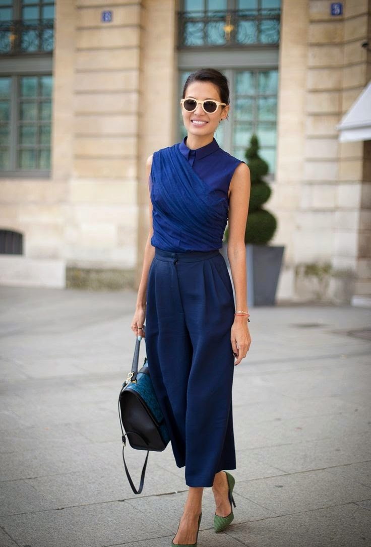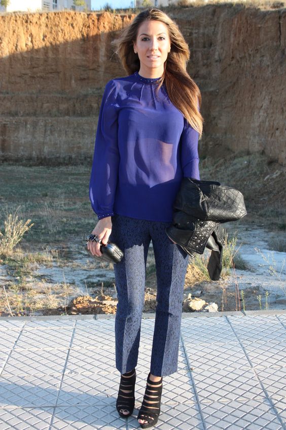 This shade is primarily associated with blue denim. However, your blouse does not have to be made of denim, it looks great in silk or chiffon incarnation.