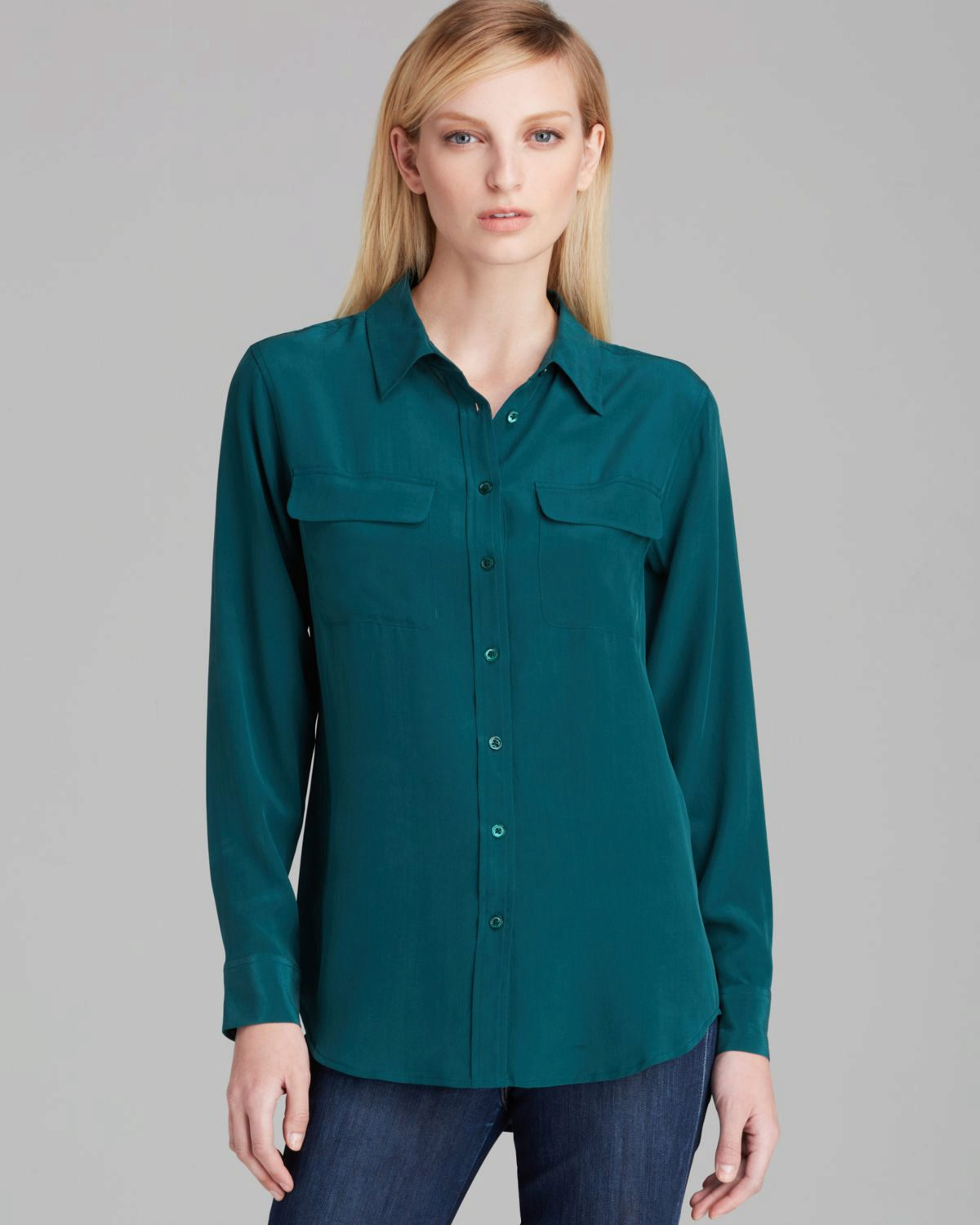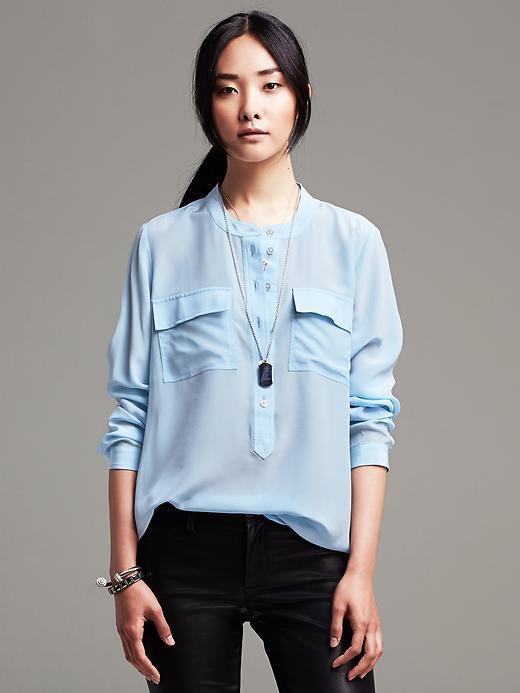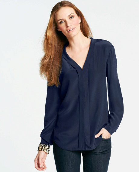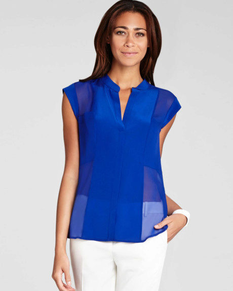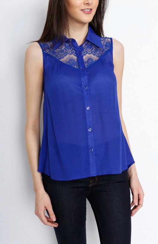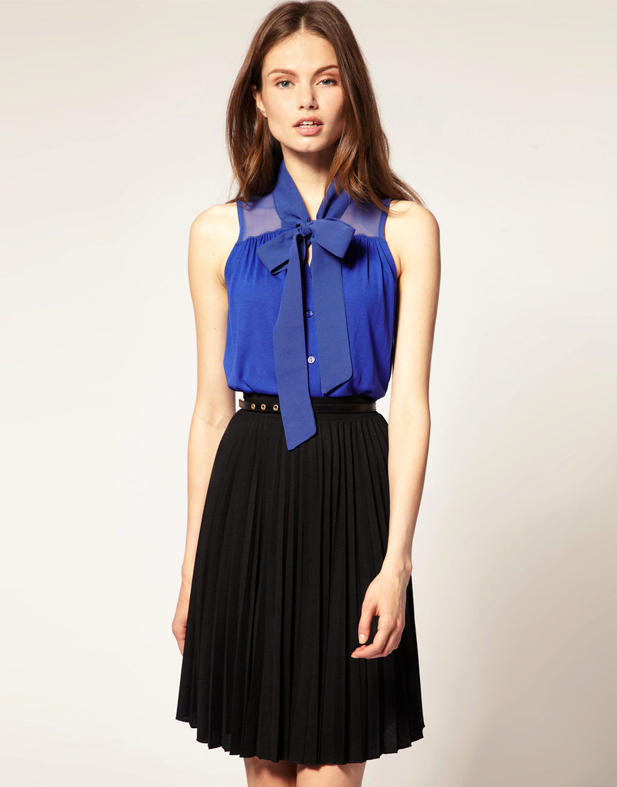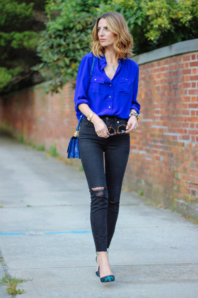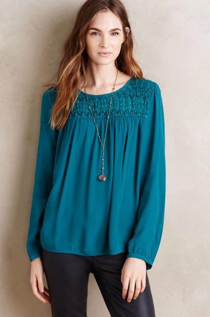 This shade is primarily associated with blue denim. However, your blouse does not have to be made of denim, it looks great in silk or chiffon incarnation.