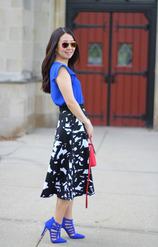 If you go to a formal event, wear a beautiful midi skirt and complement the image with elegant decorations and accessories.
