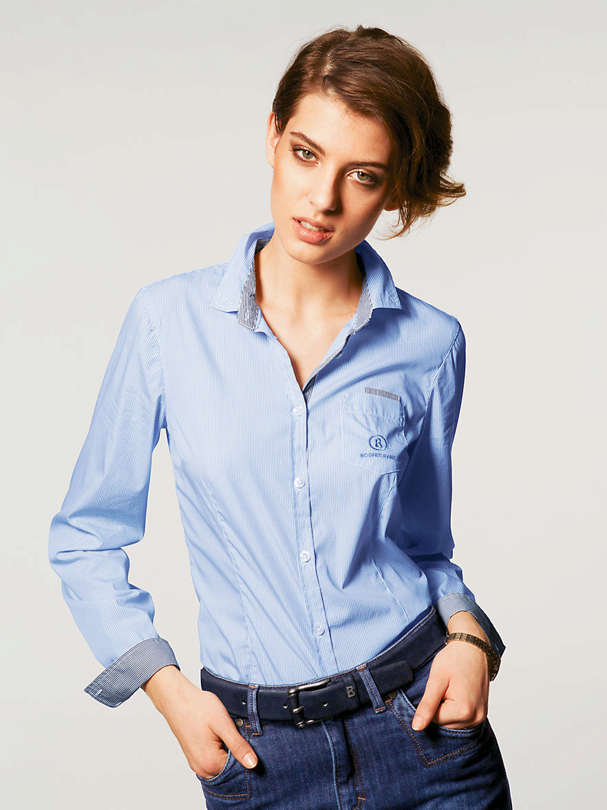 In this case, the blue blouse copes just fine, thanks to its versatility, it will fit perfectly into any image.