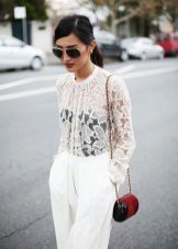 - Textured - lace and lace. Fabrics shine, so the lining is used, mostly in contrasting colors. A good option blouses - light lace and a dark lining. Thus, attention is distracted from the problem areas, and all eyes stop only on the play of color.
