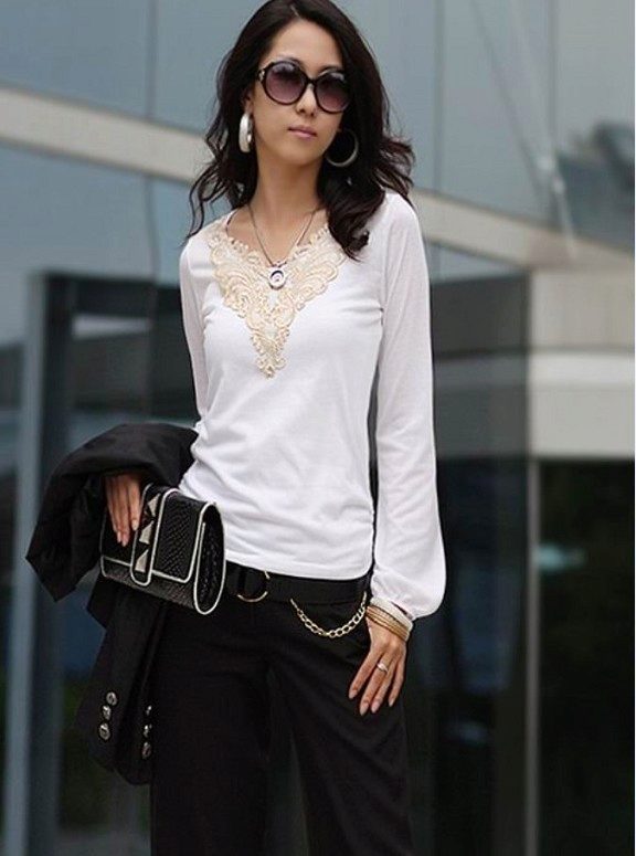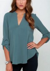 V-neck. Among evening blouses it is the best-selling model. And not surprisingly, the neckline emphasizes the chest. Such a trick is used by famous fashion houses and they get a huge number of satisfied and grateful clients.
