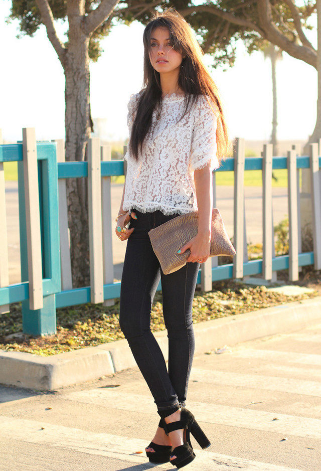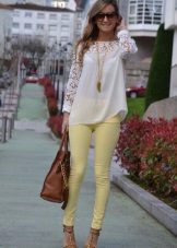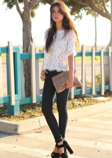 - Skinny, flared, straight cut, jeans - evening blouses are combined with any models and styles of trousers;