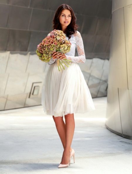- Expensive fabric. It can be silk, satin, chiffon, velvet, lace. The shiny surface looks advantageous in the light of the lights, shimmers nobly and makes the image spectacular and solemn.