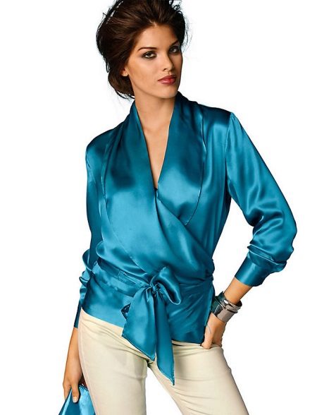 Wrap blouses. Folds of fabric can correct some flaws in the figure. Such evening wear is recommended to wear with classic trousers and pumps on stiletto heels.