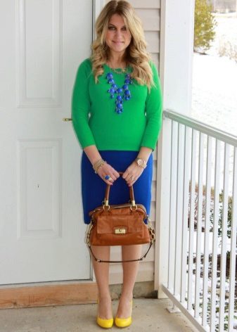 Do not forget about the sets with skirts. A straight pencil skirt with which the bow is made more elegant is well suited to a blouse of almost any model and shade. A great option would also be to use jewelry made of gold or silver.