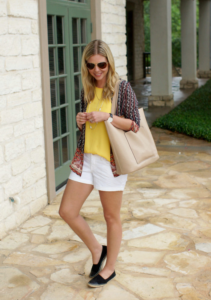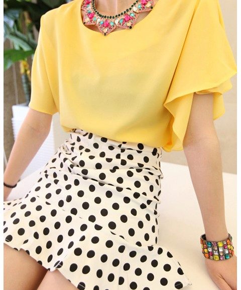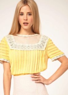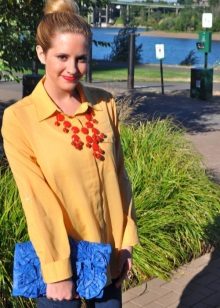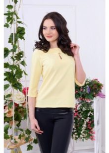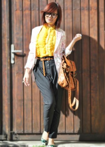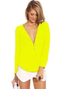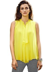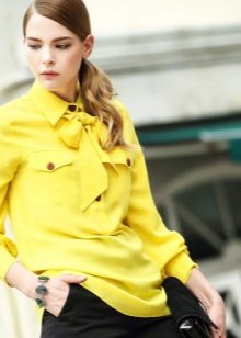 Separately noteworthy is the combination of a yellow blouse with shorts. Shorts can be of various lengths. For a more spectacular look, tuck a stylish blouse into shorts or roll up your sleeves.