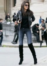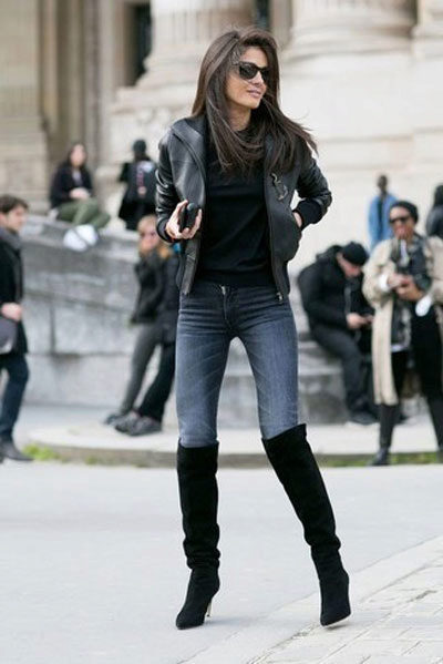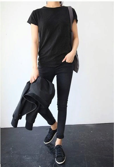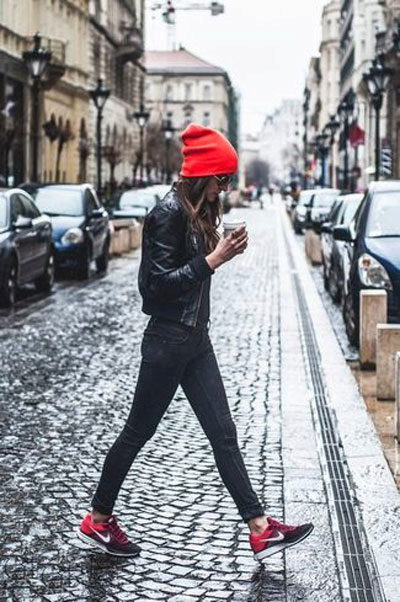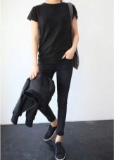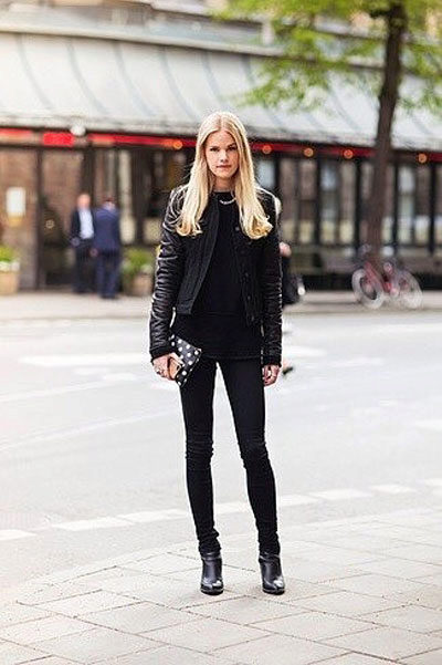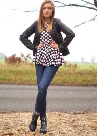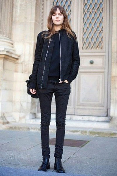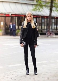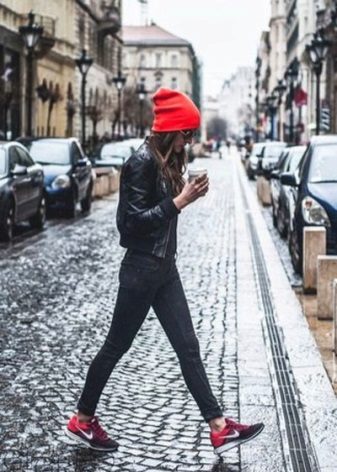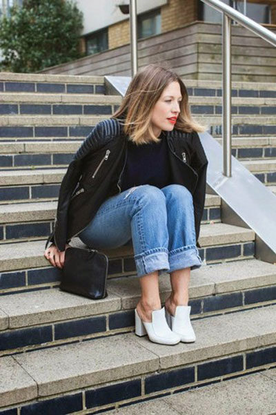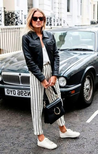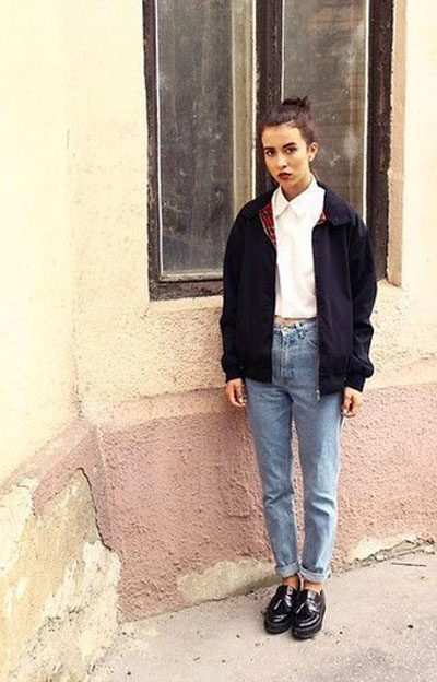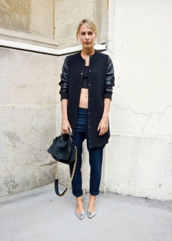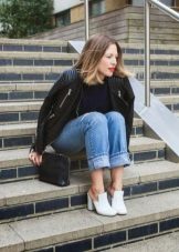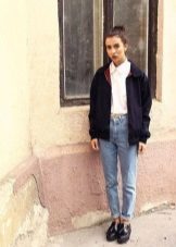 Jeans will help create a casual style. These can be skinny jeans, mom’s jeans, and classic jeans. Your choice depends on the image you create for yourself. Therefore, shoes should be selected appropriate. For mom’s jeans in combination with a black bomber jacket, sneakers or sneakers will be a good set.