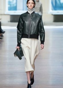 Shortened or classic bomber jacket - This is a jacket, the length of which reaches the belt. Shortened lightweight bombers are best worn in warm weather; for the off season, denser fabrics, such as leather, are suitable. Shortened, warm black bombers are a good option for the winter cold. Most often they are decorated with fur on the collar.