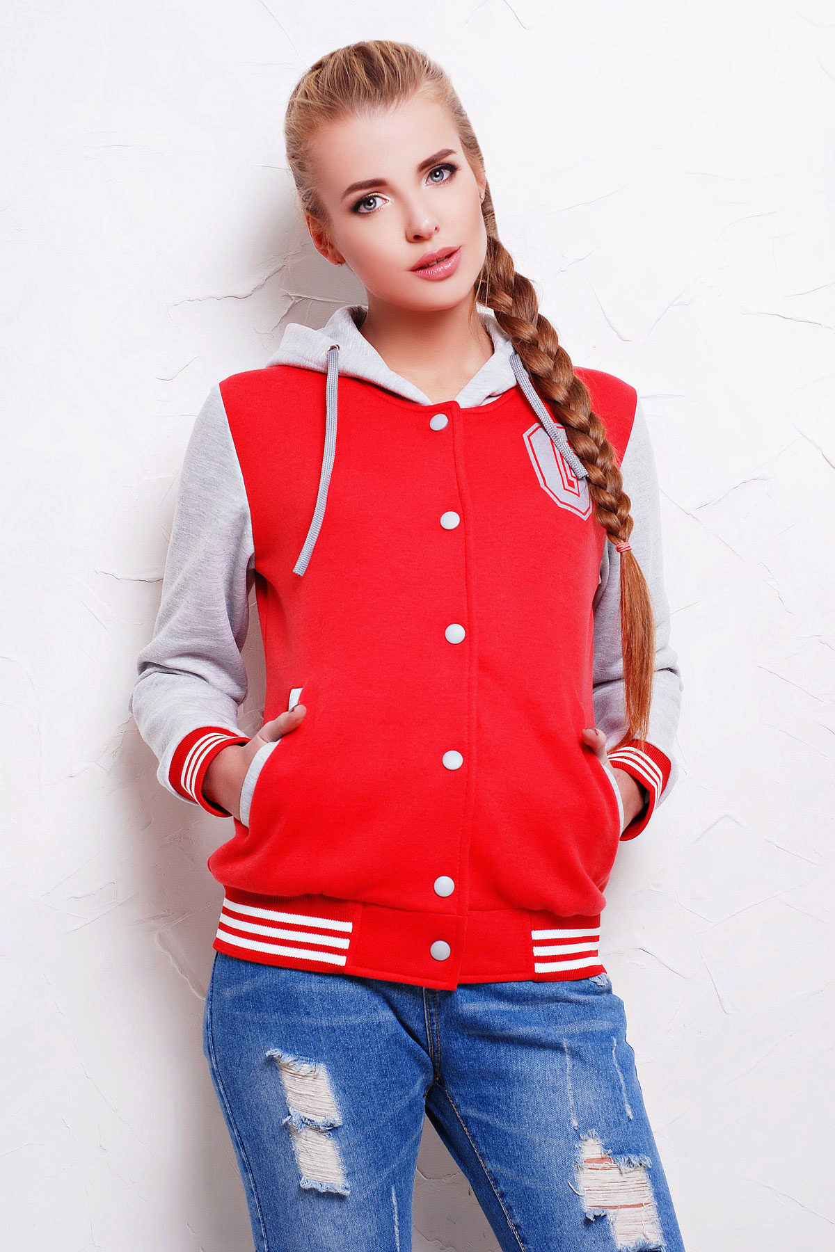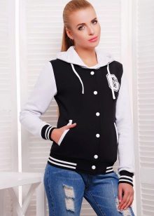 Bombers with a hood most often made of wool or knitted fabric. Most of these models are made of monophonic canvas, in which the hood and sleeves are made of materials of contrasting color.