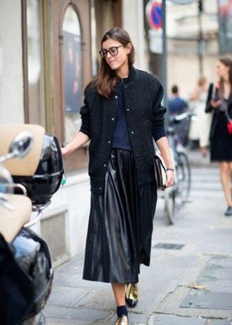 It is easy to create a street-style with a skirt of various lengths, such as a pleated skirt-sun or a short skater skater.