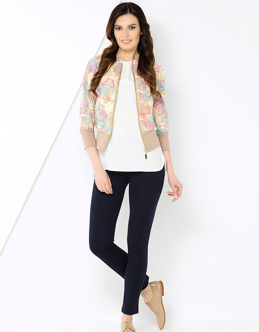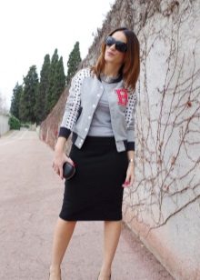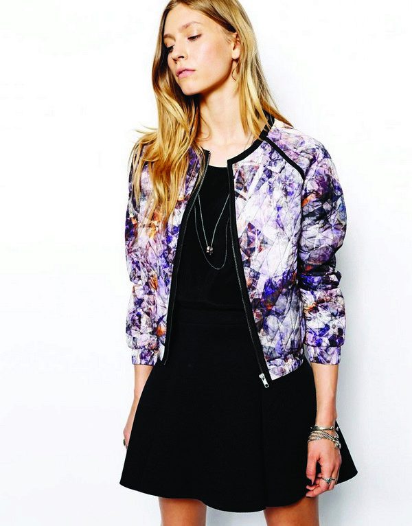 - Bomber jacket - one of the elegant types of models of this universal outerwear. Made of jacquard fabric with a beautiful print, it can be worn with a knee-length pencil skirt, a white blouse, shoes with a steady heel and is quite acceptable even for an office.