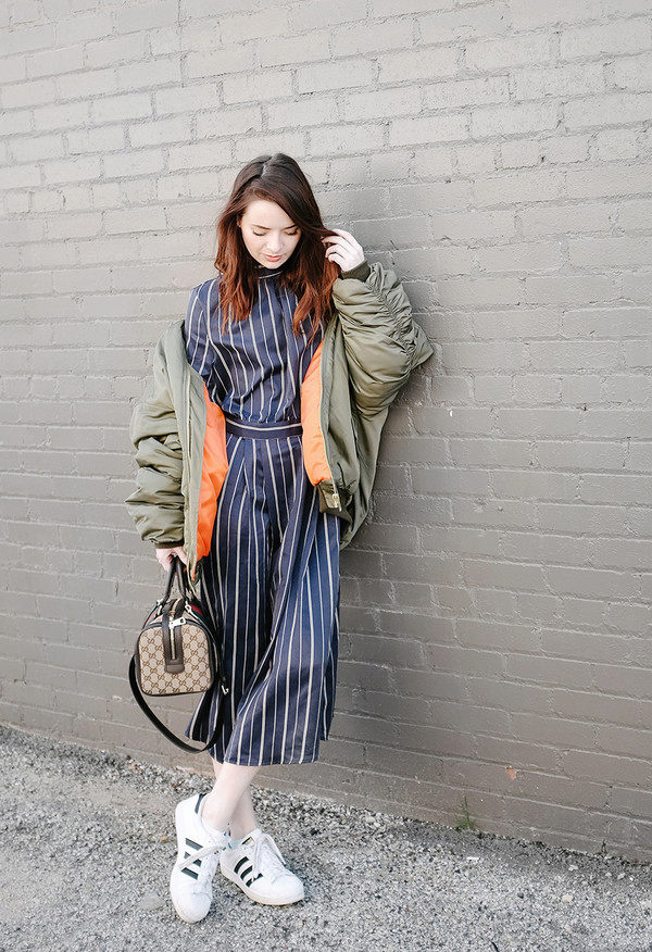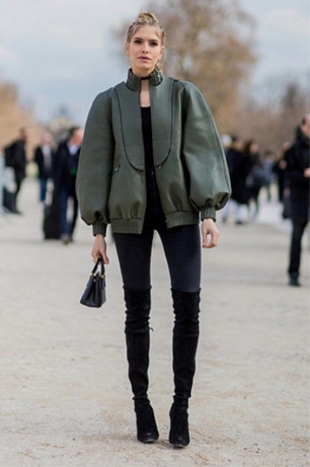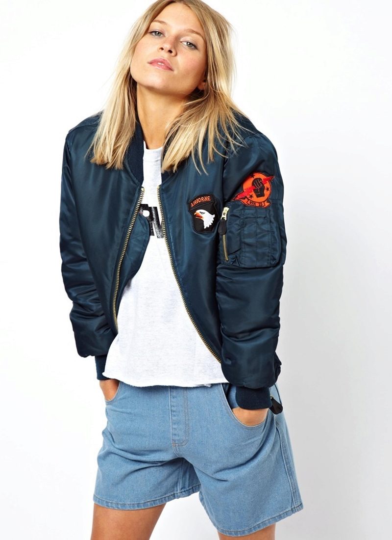 - Jacket - classic bomber model can be a wonderful acquisition for men and women who prefer the military style. Of course, such a model should pick up straight jeans, T-shirt and shoes. The jumpsuit in the same style, worn under the flight jacket, would have become an absolute hit to the point than the bomber jacket had once been.