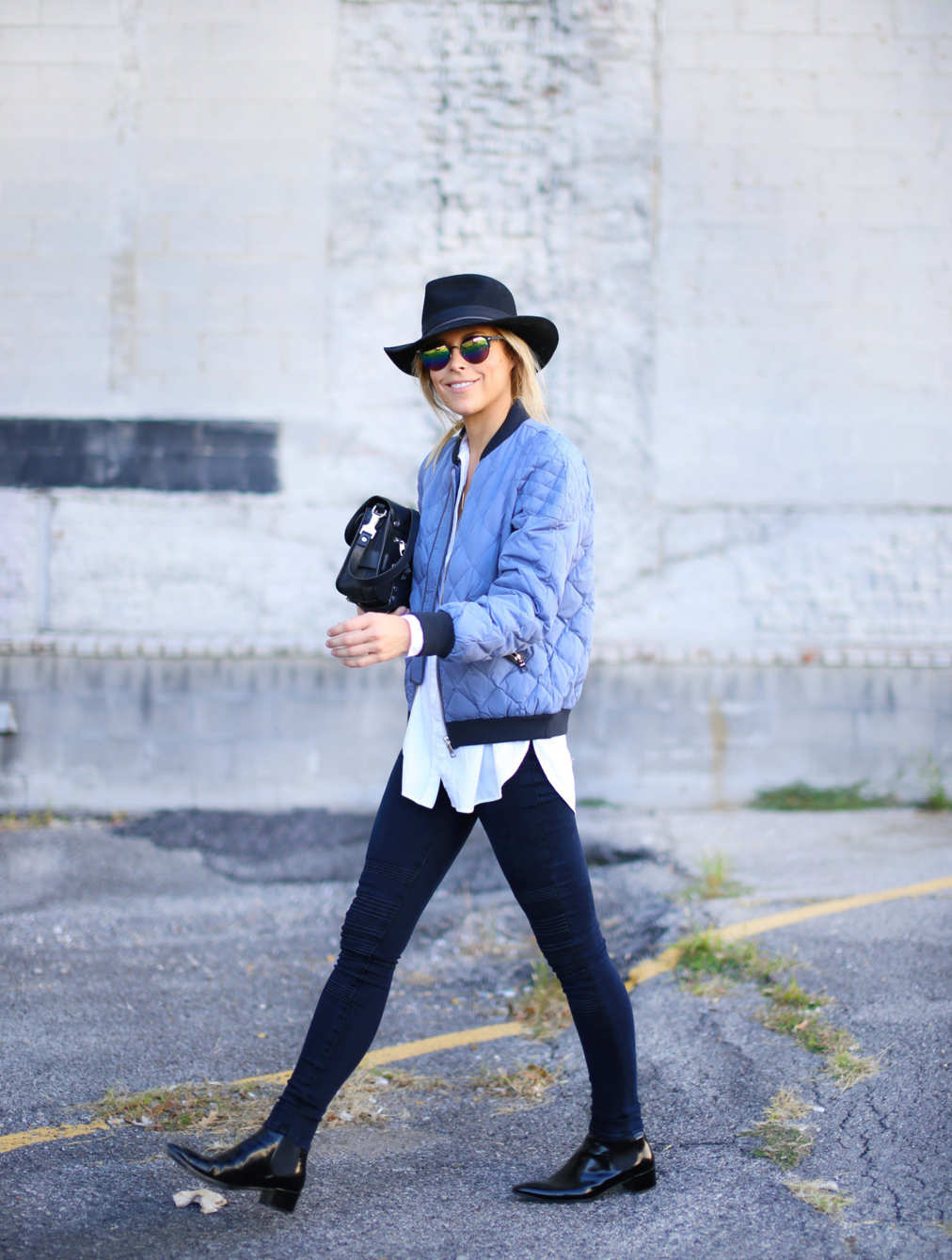 Jeans One of the most versatile materials, oddly enough, it is not very often used for sewing bomber. Well suited to jeans in excellent color.