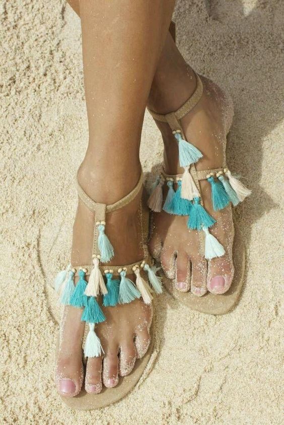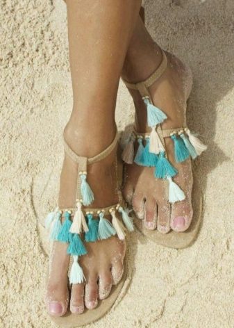 Thumb sandals are a casual walking option. They can be worn with jeans, a long linen skirt, shorts, wide canvas pants, a linen dress to the floor. The only exception is that they are in no way combined with clothes of classical style.