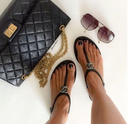 Thong sandals are imperceptible on the leg, light, immediately attract attention. Flip flops were worn at first exclusively on the beach, in the country, in the pool. Then, thanks to the designers who paid attention to them, sandals through a finger found a second life.