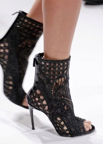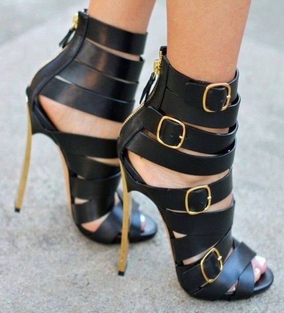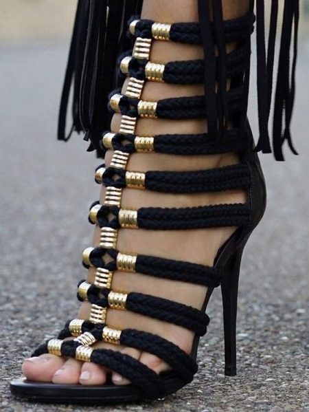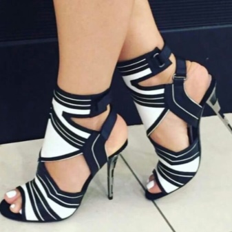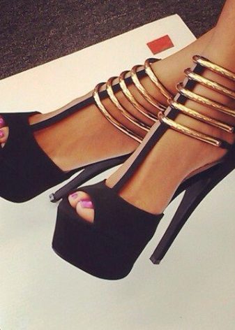 Thanks to the imagination of designers, there are many types of black sandals. The variety of models is achieved by changing the length and shape of the heel, using a variety of materials and the use of original finishes.
