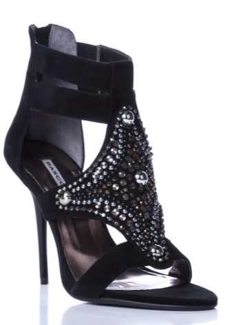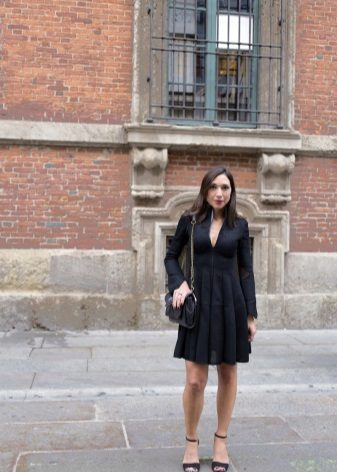 If black sandals richly decorated with rhinestones or other shiny fittings, then this option can make an excellent pair of not long simple black dress. You can choose the appropriate accessories for them, the main thing is that the shiny details are present in moderate quantities.