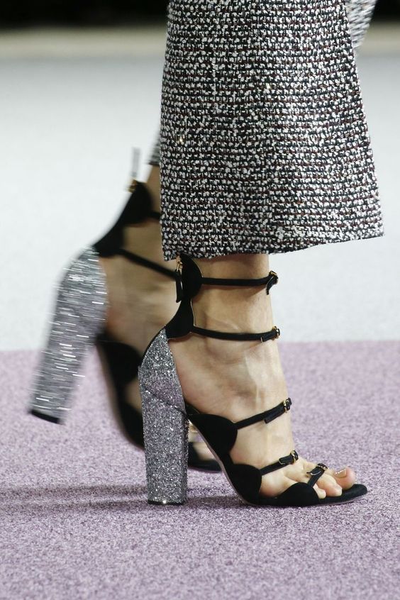 When choosing a dress and sandals, you should remember, the more luxurious the material, the simpler the product model should be. The combination of silver and black looks a little stricter than with black and golden, but in its own way.