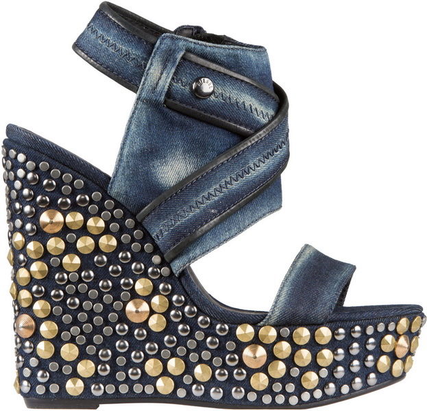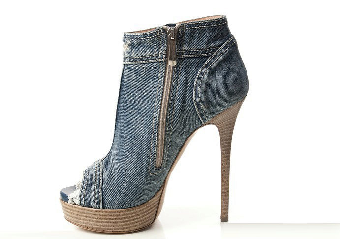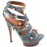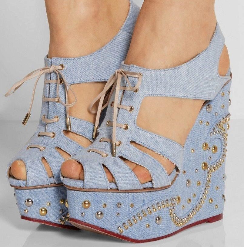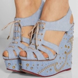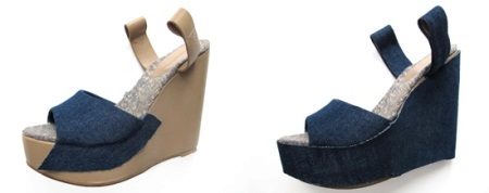 Company LOST INK (UK), creating his shoes, focuses on extravagant people. After all, not every girl dares to wear jeans sandals, equipped with a platform with a 20-centimeter heel. Such a model in a paradoxical way combines street style and luxury. Gold buckles add extra chic to the shoe.