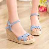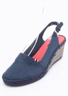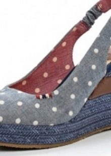 - Lovers of “sporty chic” style can complement denim sandals with a corresponding free top, necessarily adding a feminine accent in the form of jewelry or lipstick of glamorous shade.