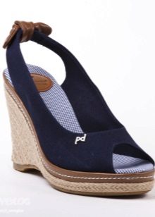 In the latest collections of many famous brands you can find the original models of denim sandals. So, the Italian brand Primadonna collection offers a range of products on the wedge, among which a worthy place is occupied by options from denim. The shoes feature a stylish round cape and a sleek design that includes metal elements.