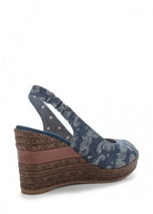 An interesting solution - denim sandals on a thick platform. Especially fashionable options with a cut on the bow and heel part.