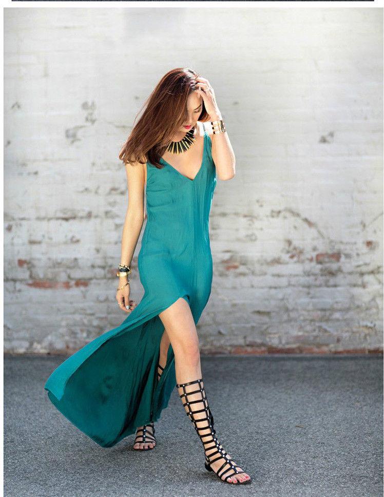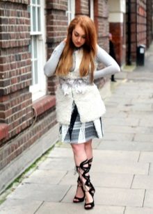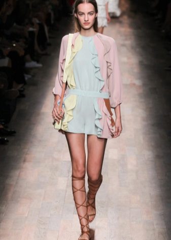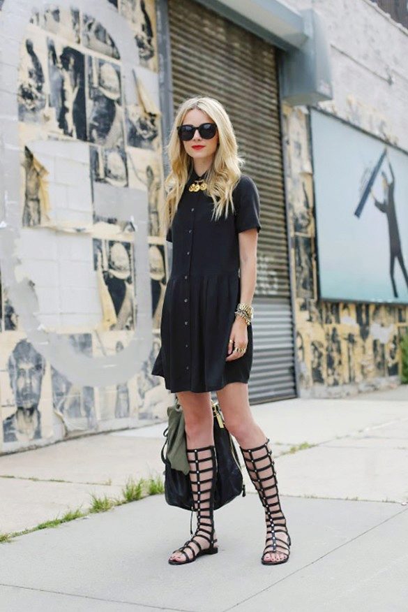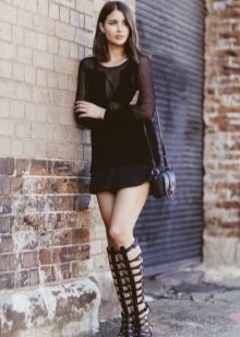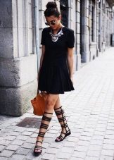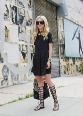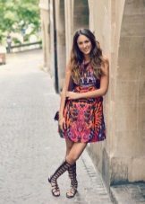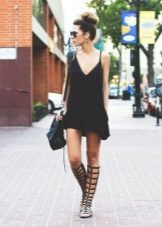 High "gladiators" will be good with short dresses and sundresses. An important point is that the straps, reaching the knee, will visually shorten the legs, therefore, it is better to choose such models better than long-legged young ladies. Also, do not choose high sandals full girls - the straps can cut into the skin, which will look unaesthetic.