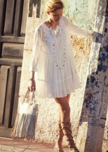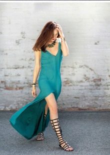 The first thing that suggests itself as an ensemble for sandals in the Greek style is a weightless light chiffon dress-tunic in the same style. If you choose classic "brutal" sandals, the image will be very contrasting - a gentle dress and rough shoes.