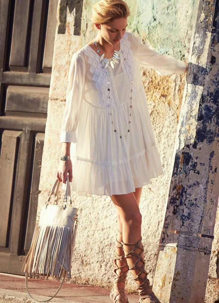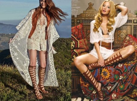 Roman-style sandals are very supportive of similar accessories. It can be leather bracelets, belts or bags with rivets, fringe or decorated with weaving. Look great with volume earrings and necklaces in ethnic style made of leather, beads and metal.