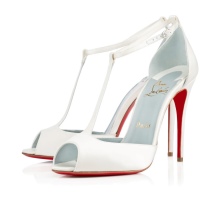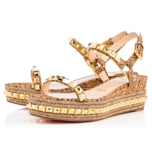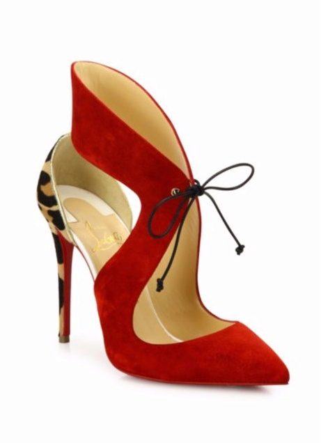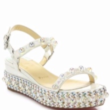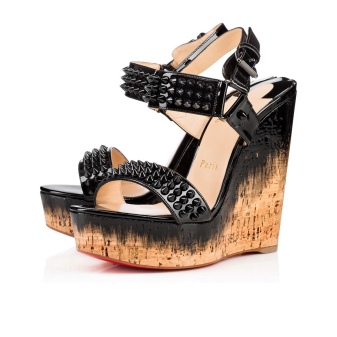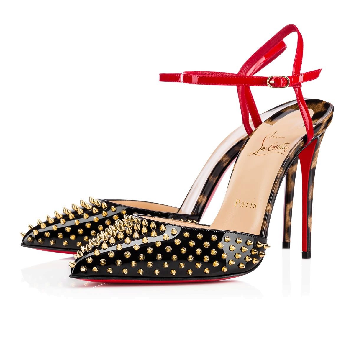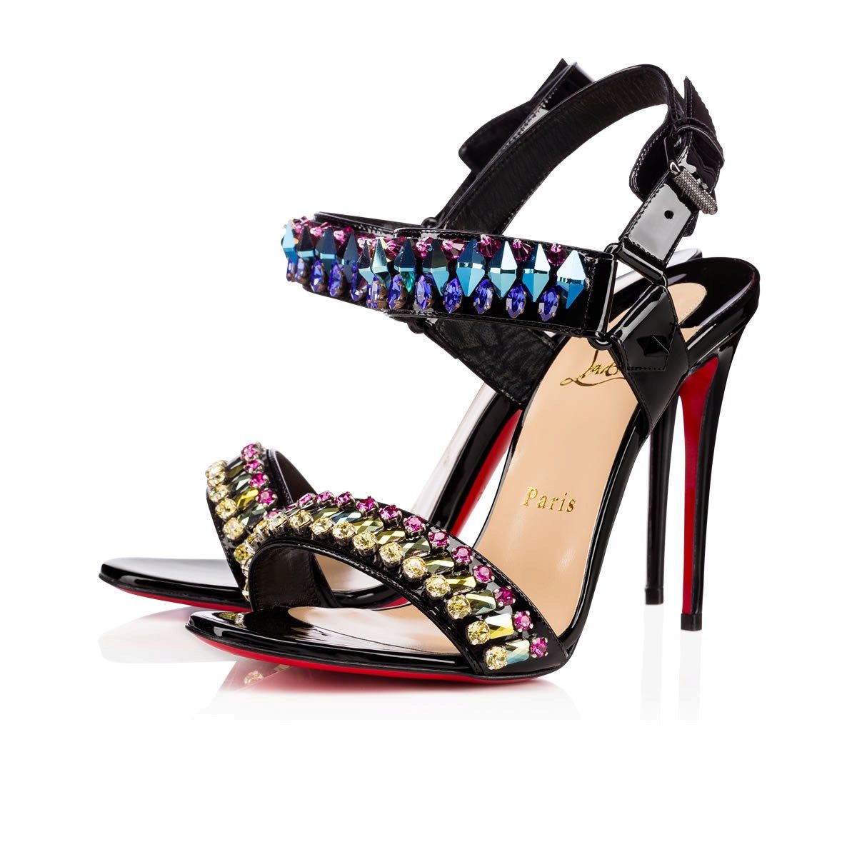 Spiked sandals reflect the moment when Christian Louboutin brand sophistication meets punk and grunge styles. At their turn, the designer presents black lacquered sandals with metal spikes and red straps around the ankle. They are concise, sexy in shape, but bold and creative in color and decor.