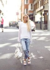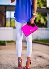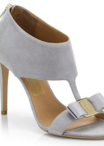 An open dress or outfit from a light T-shirt, a mini-shorts or short skirt will beautifully complement the light sandals on the platform or high heels. Under the summer outfit, consisting of white trousers and deep-colored light tunic, this season's fashionable silver or gold stiletto sandals are perfect.
