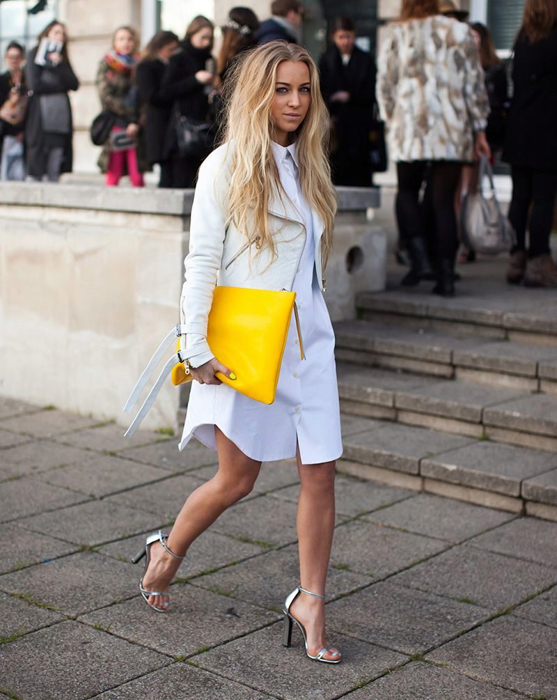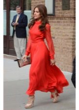 The color range of sandals may not correspond to the color of the dress. The game of contrasts remains relevant this season. Therefore, the outfit, made in black and white, may well dilute the sandals bright pink, red or orange.
