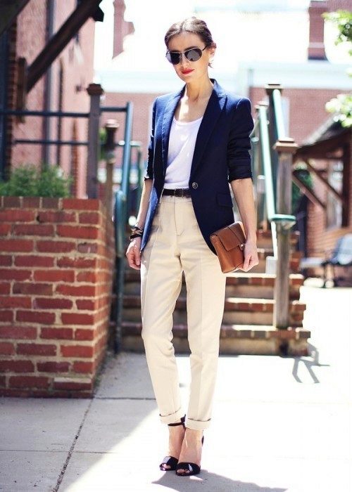 Semi-closed sandals are perfect for a business suitFor example, with cropped trousers or a straight pencil skirt and a strict white blouse.