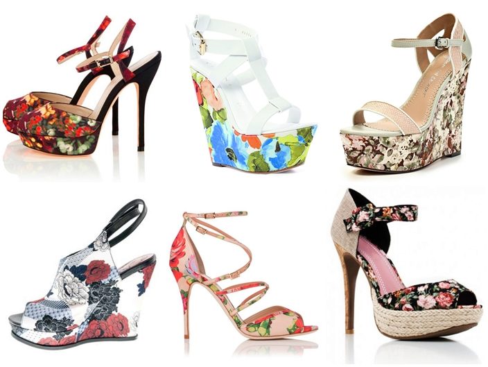 Among the most popular print options, the first place always keeps a floral pattern. Multi-colored or monochromatic buds of all sizes - ideal for hot summer. Flowers can decorate sandals as a textile pattern, and can be used in appliqués, or an artificial composition for decorating socks, heels, etc.