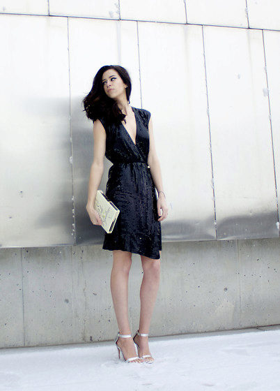 To the party. Cocktail skinny mini-dress and black sandals on a dizzying hairpin - increased attention of the strong half of humanity is provided;