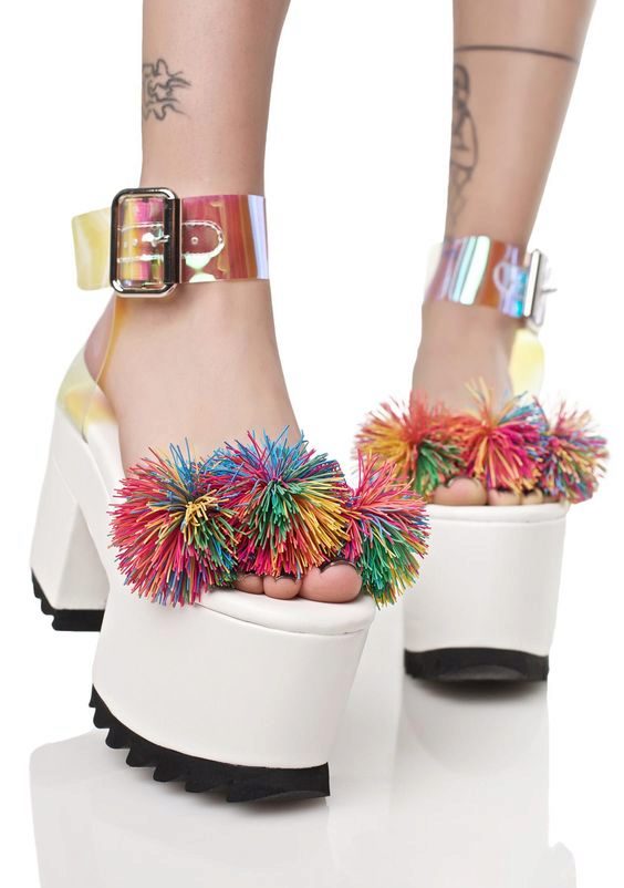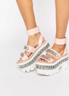 This model of sandals, despite its massiveness, is combined with many feminine summer looks. Due to the voluminous white sole, legs in such sandals seem more slender and long.