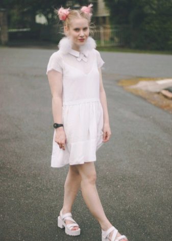 The flat sole of such sandals can be an addition to the casual style of clothing. Oversize T-shirts, leggings, denim shorts and T-shirts are suitable for sandals on a white flat sole.