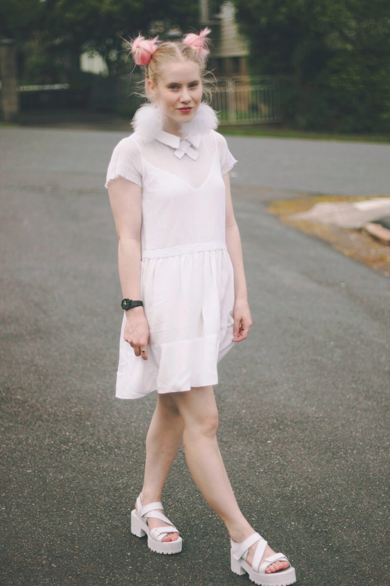 However, you should not overload such shoes with additional decorative elements, the main accent of sandals is their white massive sole.