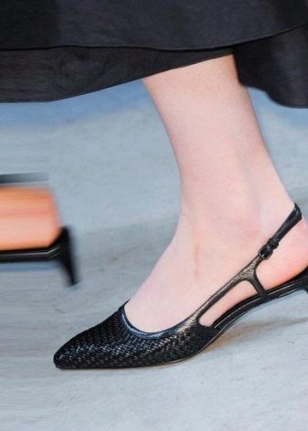 Despite the variety of decor, stylists still advise to give preference to retro style. Pointed nose, thin strap and a small heel "glass". Such minimalism will be successfully combined with both jeans and dresses.