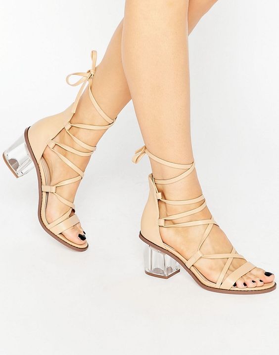 No less relevant in the new season will be high sandals with miniature heels. Such models will suit full legs and will be able to hide the flaws of a wide foot.