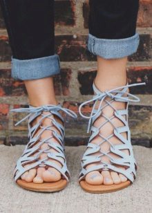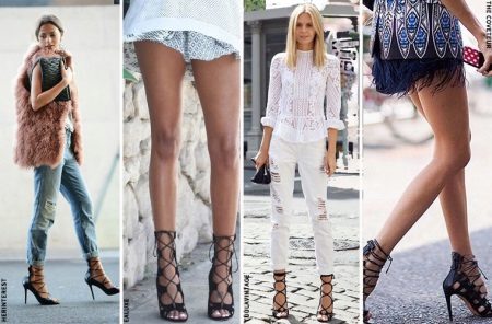 For years already at the peak of the popularity of lace-up sandals. And this is no accident, because there are many variants of lacing, therefore, the images are different.