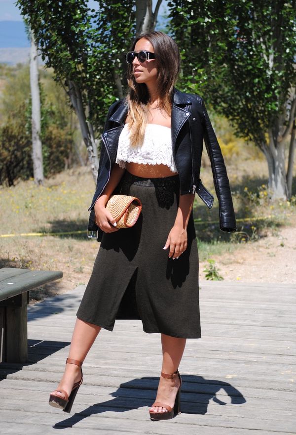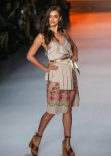 Skirts. Slender legs in a mini skirt will look perfect in such sandals - they will be even longer and slimmer. With such a skirt fit from the top and blouses. Crop-top is relevant for the combination with skirts. The shape of the skirt is also varied - from a trapezoid skirt for walking to a pencil skirt for an office.