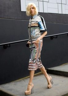 Shorts and breeches. Shorts can be both fitting denim and classic fabric, wide cut. The top can be represented by a bright top, a light blouse, a T-shirt with a bright pattern.