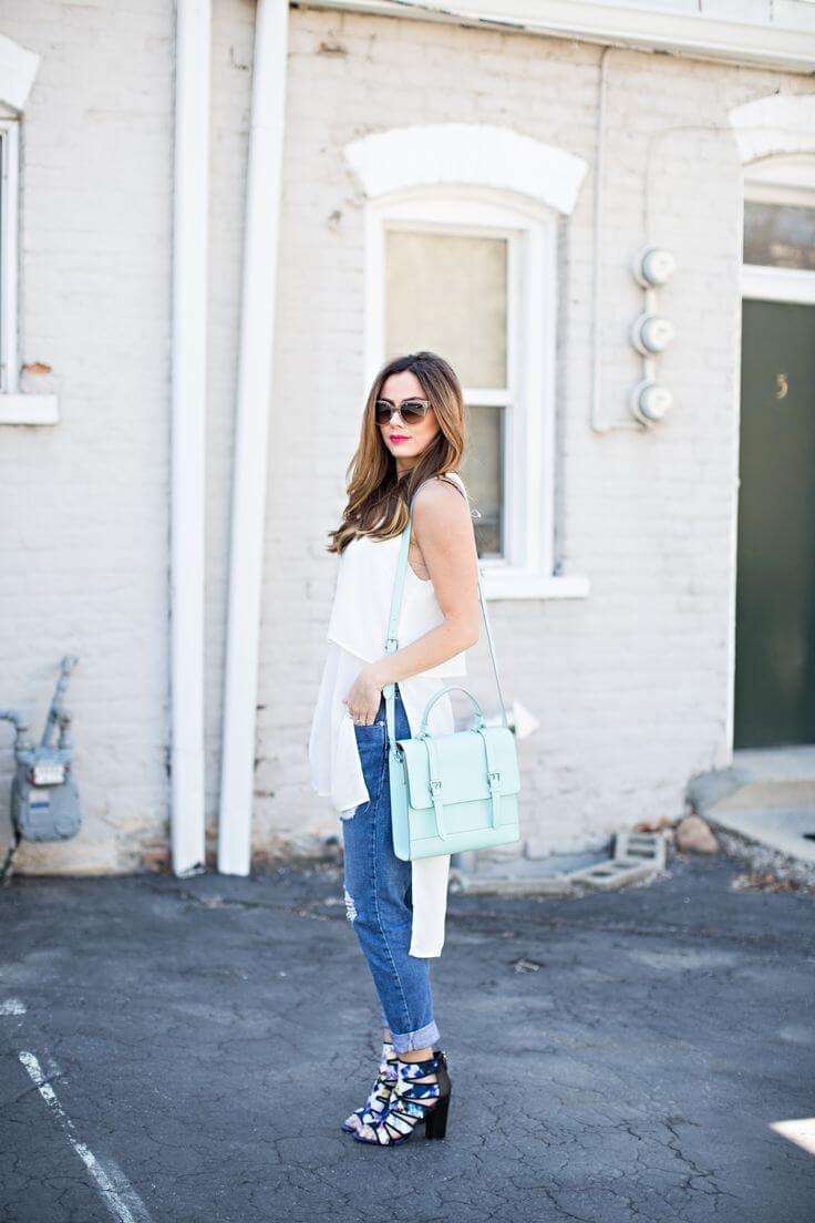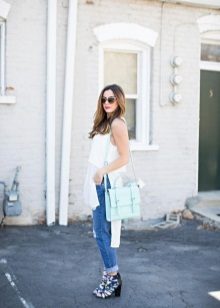 Sandals with thick heels of soothing shades with a light dress or a sundress, jeans and breeches are suitable for walking and shopping. If you are going to the beach get light sandals - from white to blue and combine them with shorts and tunics.