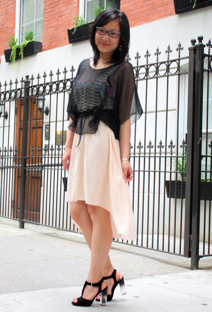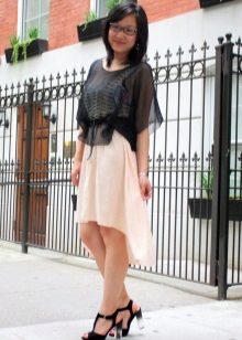 The length of the skirt can vary, the main thing is to choose the correct height and thickness of the heel.