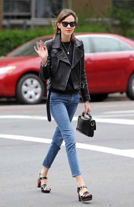 Jeans. They fit absolutely any sandals. This image is for convenience.Model jeans can be any - from skintight "skinny" to wide "boyfriends." We select harmonious ones for them, or, on the contrary, the opposite style and the bow are ready for walks and meetings with friends. Leggings are another good combination with thick-heeled sandals.
